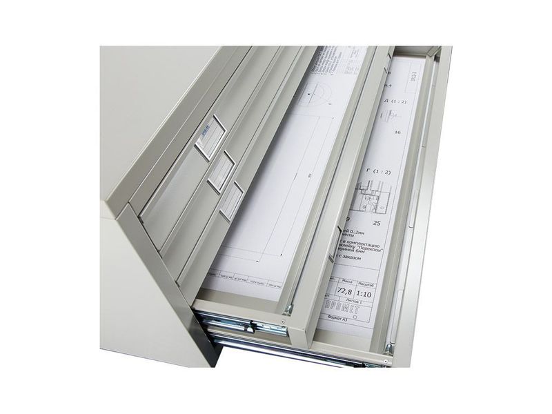 Предназначена для удобного хранения документов формата А1 (геологоразведочные карты, планы и конструкторские чертежи), дополнительно можно установить разделители под формат А2, А3, А4 (опция)