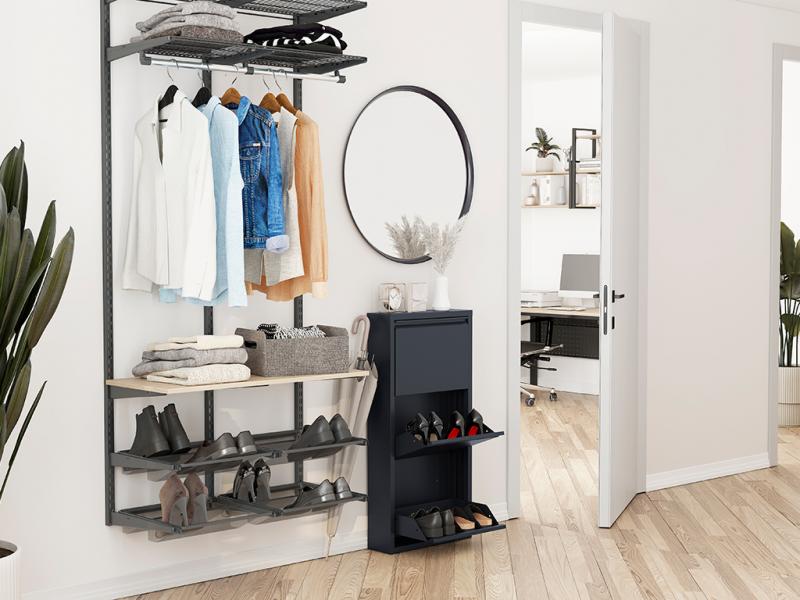 - Возможность хранения 2-х пар обуви на каждой секции (до 43 размера).